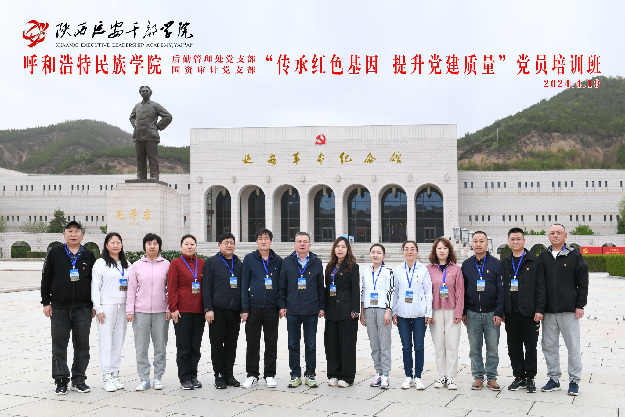 深入学习贯彻习近平总书记关于党纪学习教育的主要讲话和主要指示精神,,,,, ,立异党纪学习教育方法,,,,, ,进一步提升党员干部综合素养,,,,, ,419日至21日,,,,, ,国资处审计处部分党员赴陕西延安开展了“传承红色基因 提升党建质量”教育培训。。。。 。。。。