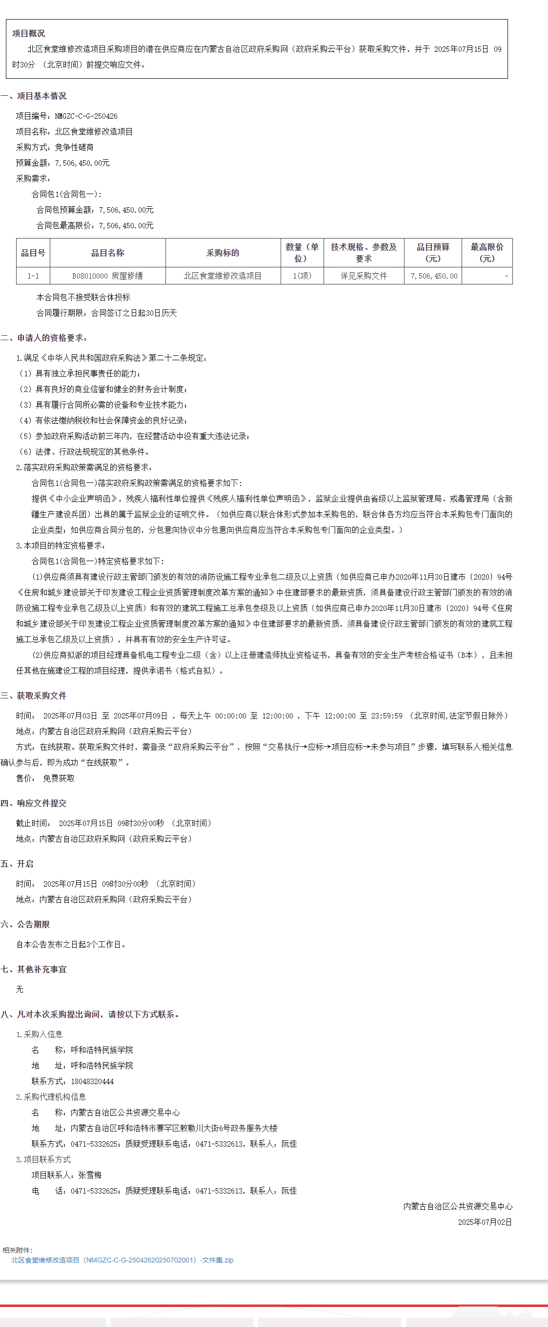 胜天国际官网北区食堂维修刷新项目竞争性探讨通告