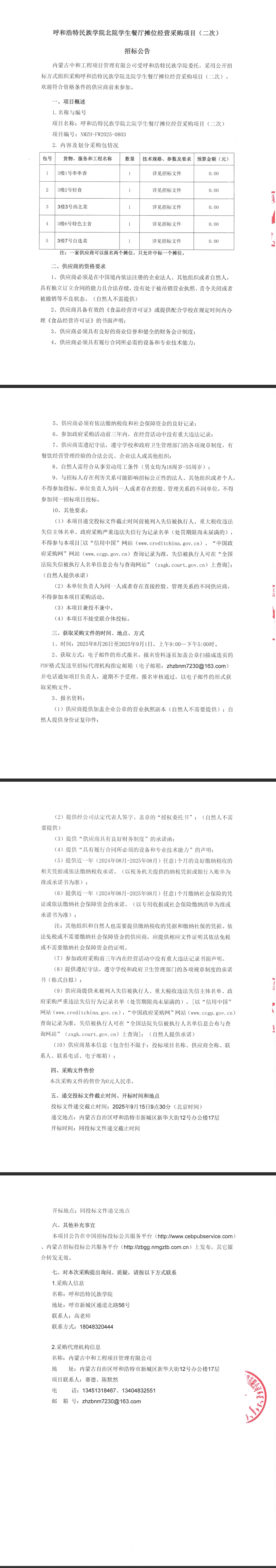 胜天国际官网北院学生餐厅摊位谋划采购项目(二次)招标通告