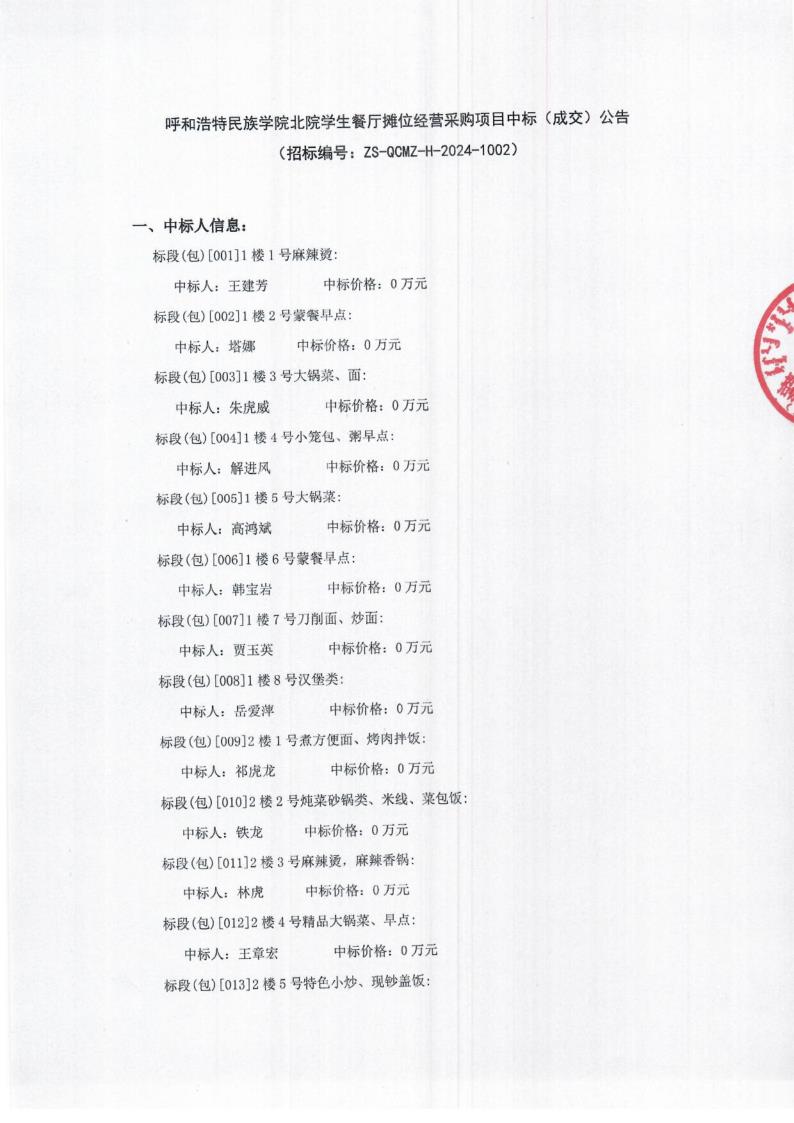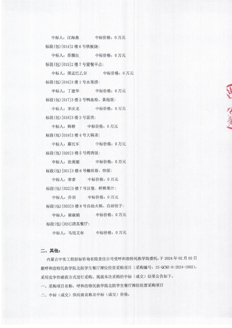 胜天国际官网北院学生餐厅摊位谋划采购项目中标(成交)通告