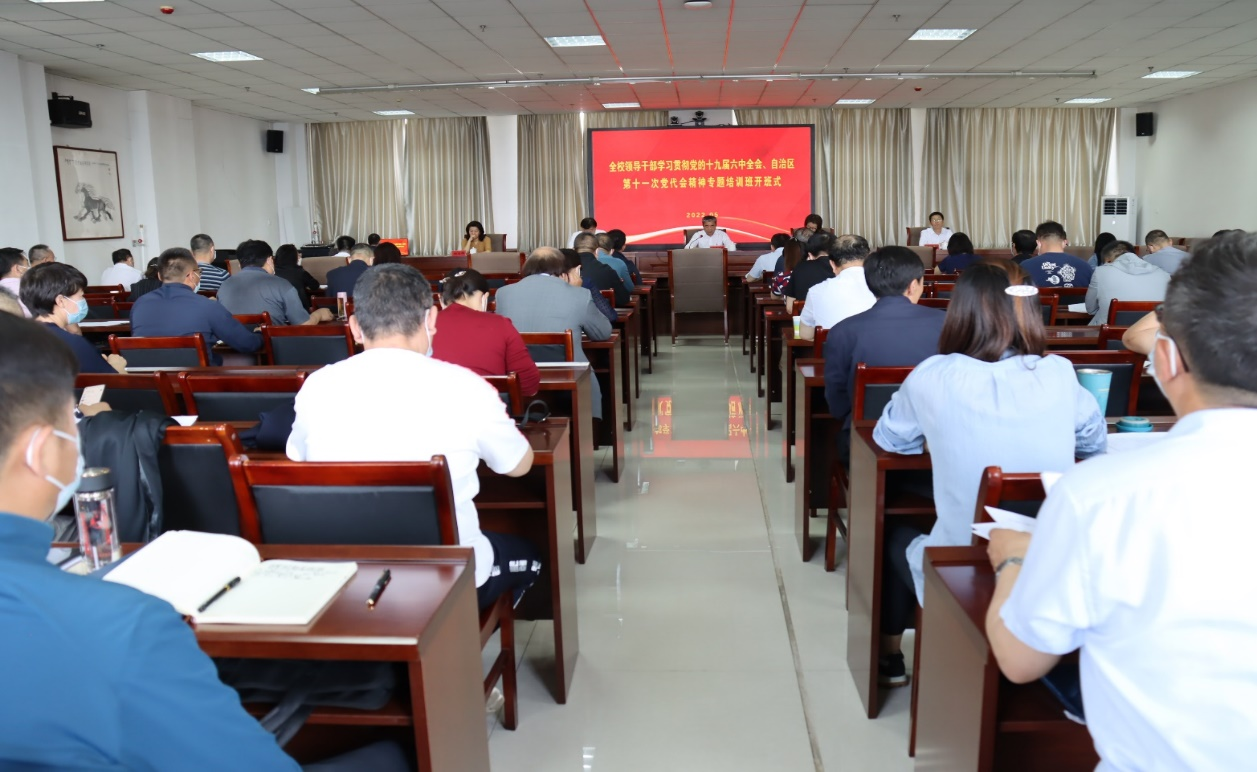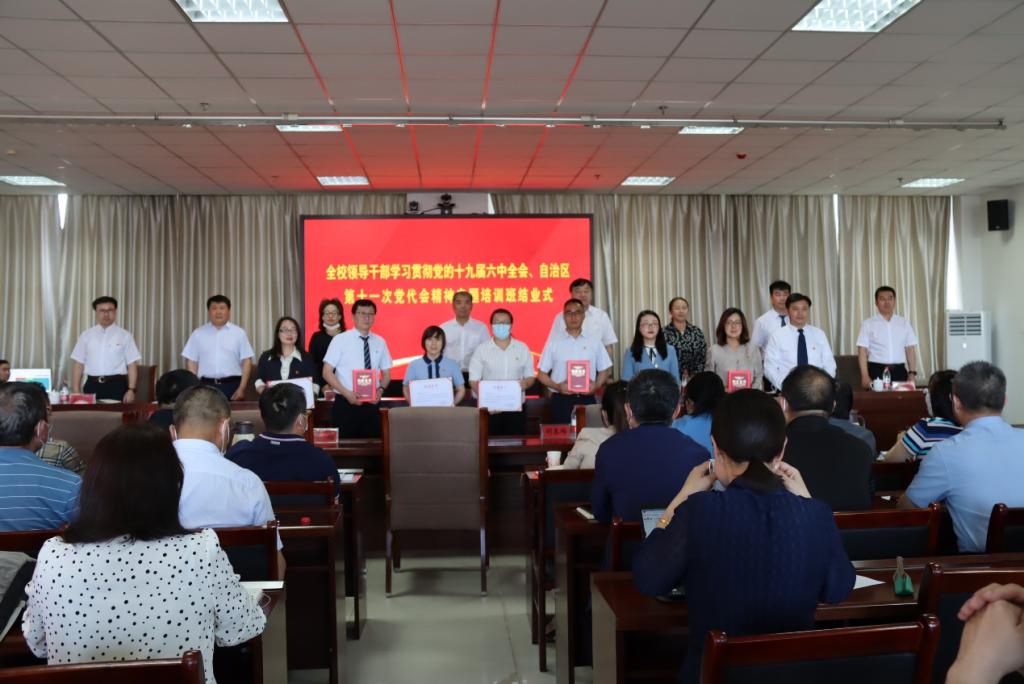 为深入学习贯彻党的十九届六中全会精神和自治区第十一次党代会精神,,,,,,,,更好地落实以史为鉴、开创未来的主要要求,,,,,,,,深刻熟悉“两个确立”的决议性意义,,,,,,,,鼎力大举弘扬伟大建党精神,,,,,,,,进一步提升干步队伍效劳学校中心阵势、起劲继续作为的素质能力,,,,,,,,5月28日—6月6日,,,,,,,,学校举行了向导干部学习贯彻党的十九届六中全会精神、自治区第十一次党代会精神专题培训班,,,,,,,,全校120余名处级以上干部加入了培训。。。。。。。。