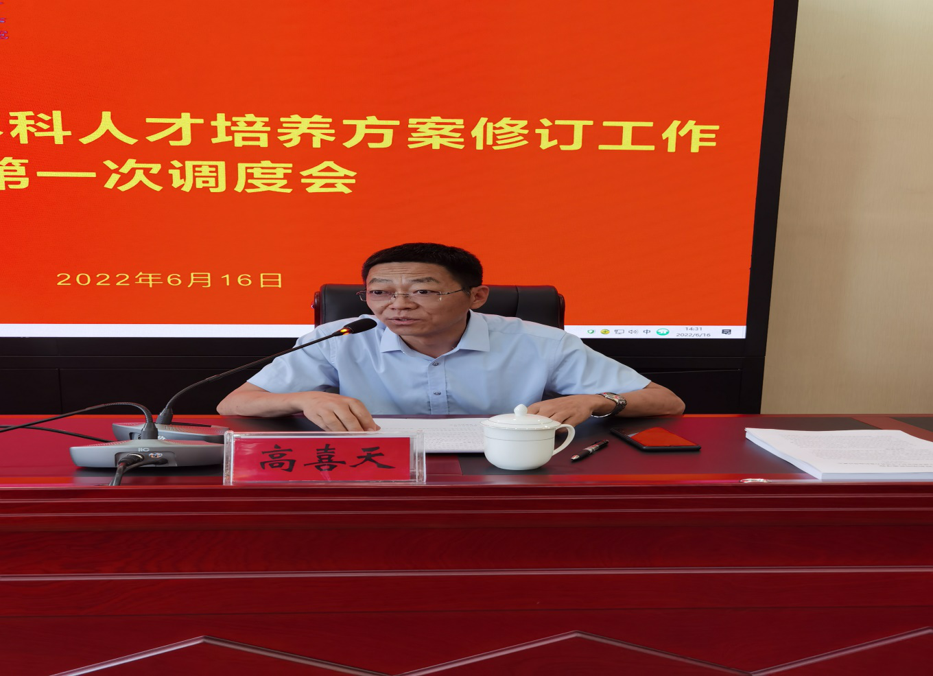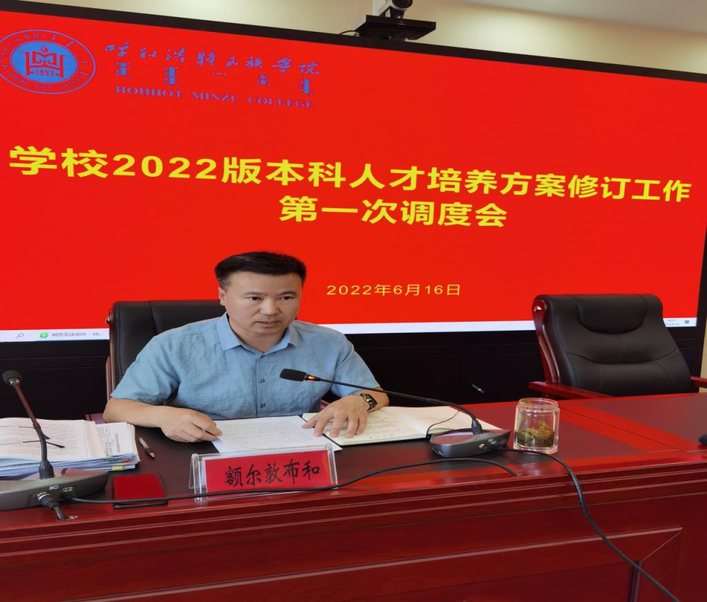 2022年6月16日下昼,,,,,,在办公楼四楼聚会室召开学校2022年春季学期返校事情安排暨2022版本科人才作育计划修订事情第一次调理会。。。。。。。副校长高喜天出席聚会,,,,,,教务随处长额尔敦布和主持聚会。。。。。。。