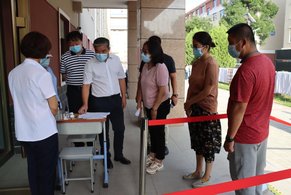 返校当天,,,,,,校党委书记格日乐图、校长乔彪、副校长纳丽娜等校向导,,,,,,在疫情防控事情专项事情组认真人陪同下,,,,,,实地踏查校园入口磨练点、核酸检测点、学生餐厅、学生公寓等疫情防控重点区域,,,,,,现场相识了学生返校重点环节疫情防控步伐的落真相形,,,,,,一定了各相关职能部分前期准备事情,,,,,,并要求各部分严酷凭证我校《2022年秋季学期师生返校疫情防控事情计划》相关要求,,,,,,落实各项事情使命,,,,,,增强与属地疾控部分联系,,,,,,切实为师生身心康健和生命清静保驾护航。。。。。。