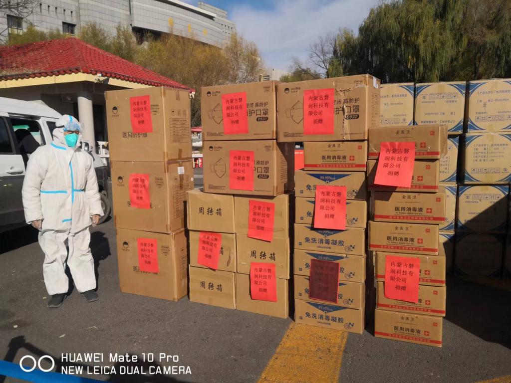 内蒙古磐润科技有限公司向我校捐赠防疫物资医用防护口罩2000只、酒精喷雾(100ml)840瓶、酒精(500ml)240瓶、外科免洗手消毒凝胶(500ml)240瓶、医用防护服150套,,,,,,,,助力我校打赢疫情防控攻坚战。。。。。。。。
