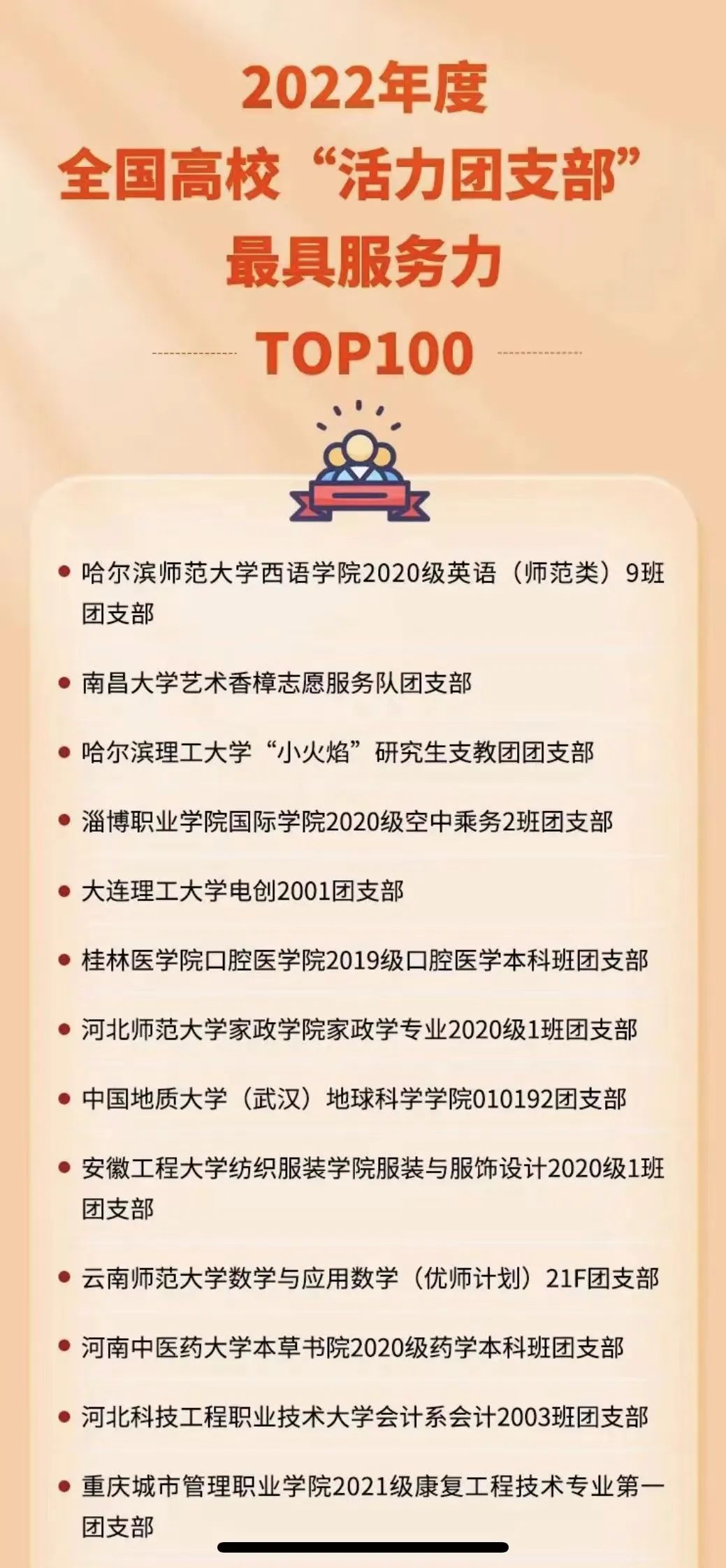 我校团支部入围2022年度天下高校“活力团支部”TOP100