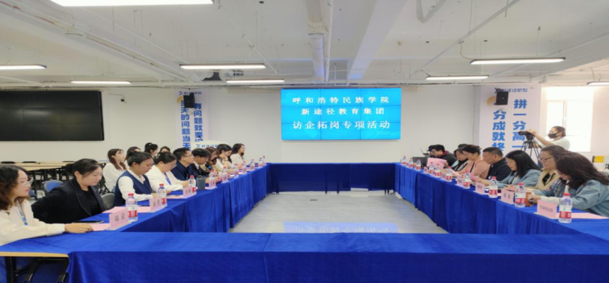 为周全落实勤学习贯彻习近平新时代中国特色社会主义头脑主题教育各项使命和教育部“访企拓岗”专项行动事情安排要求,,,,,,,,深入开展学生就业事情和人才作育事情领域的视察研究,,,,,,,,5月9日上午,,,,,,,,副校长纳丽娜带队赴内蒙古新途径教育科技有限公司开展访企拓岗促就业专项调研并举行座谈交流。。。。。。。