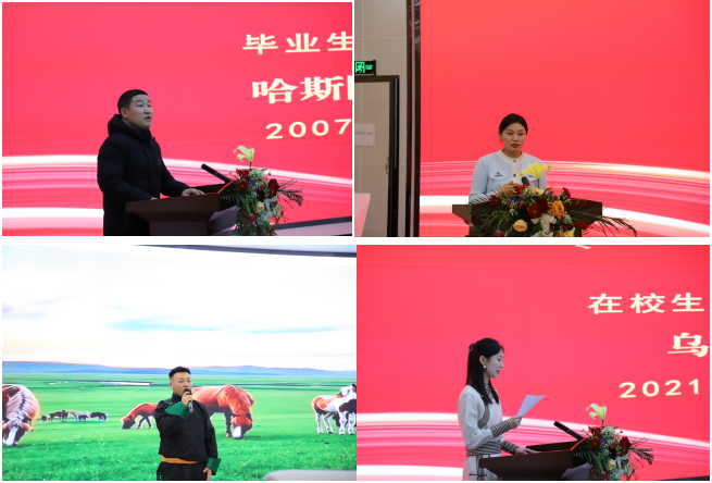 结业生代表哈斯图力古尔和乌云苏布德、在校生代表乌英嘎同砚依次讲话,, ,, ,, ,,他们表达了年轻人应该自动用马克思主义理论武装头脑,, ,, ,, ,,生长为有理想、敢继续、能受苦、肯斗争的新时代青年 。。。。。。