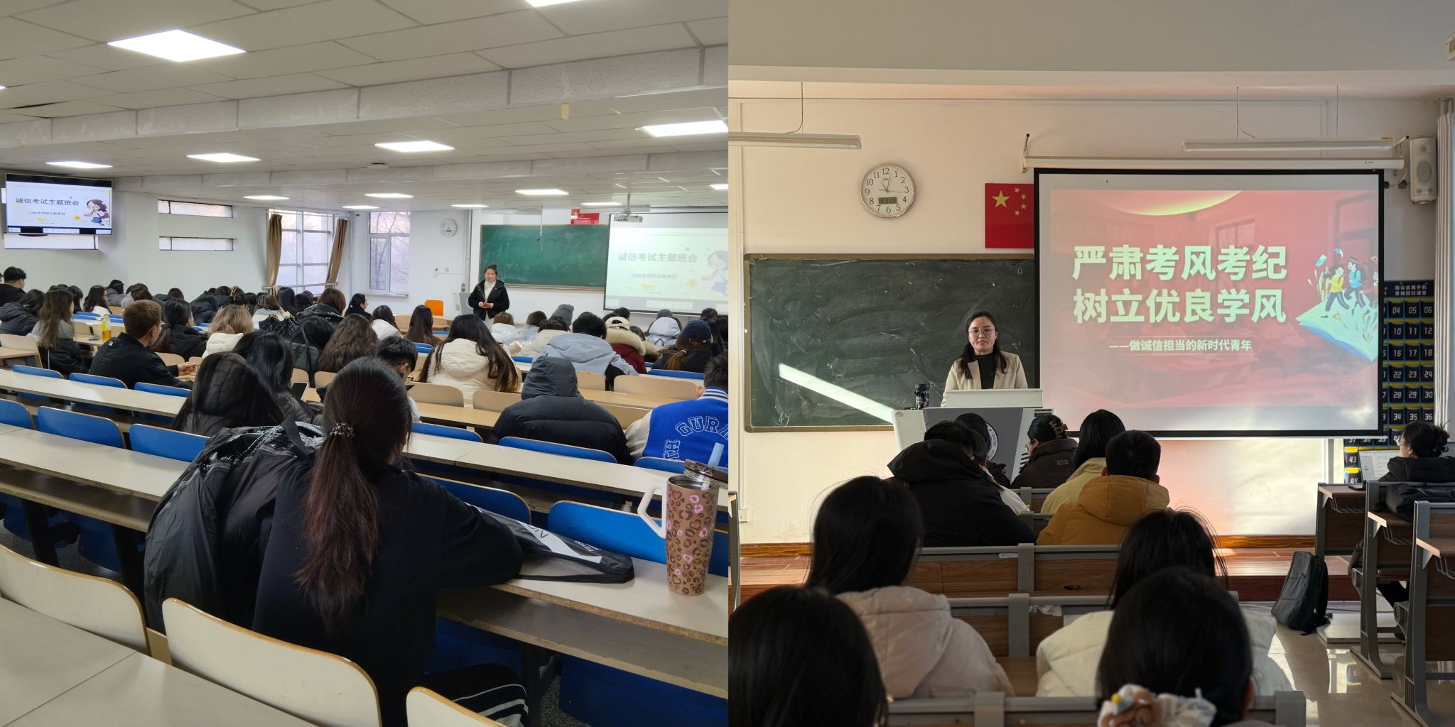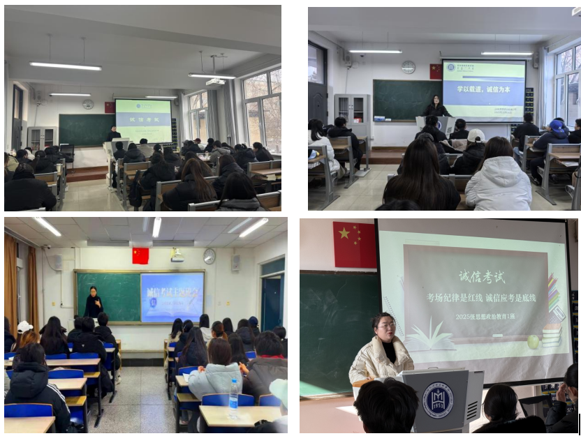 为贯彻落实学院期末考试事情安排,,,,,,,,进一步强化学生诚信应考意识,,,,,,,,营造公正公正、风清气正的考试气氛,,,,,,,,12月24-26日,,,,,,,,马克思主义学院头脑政治教育专业各班级陆续召开诚信考试主题班会,,,,,,,,全体思政专业学生参会。。。。。。。