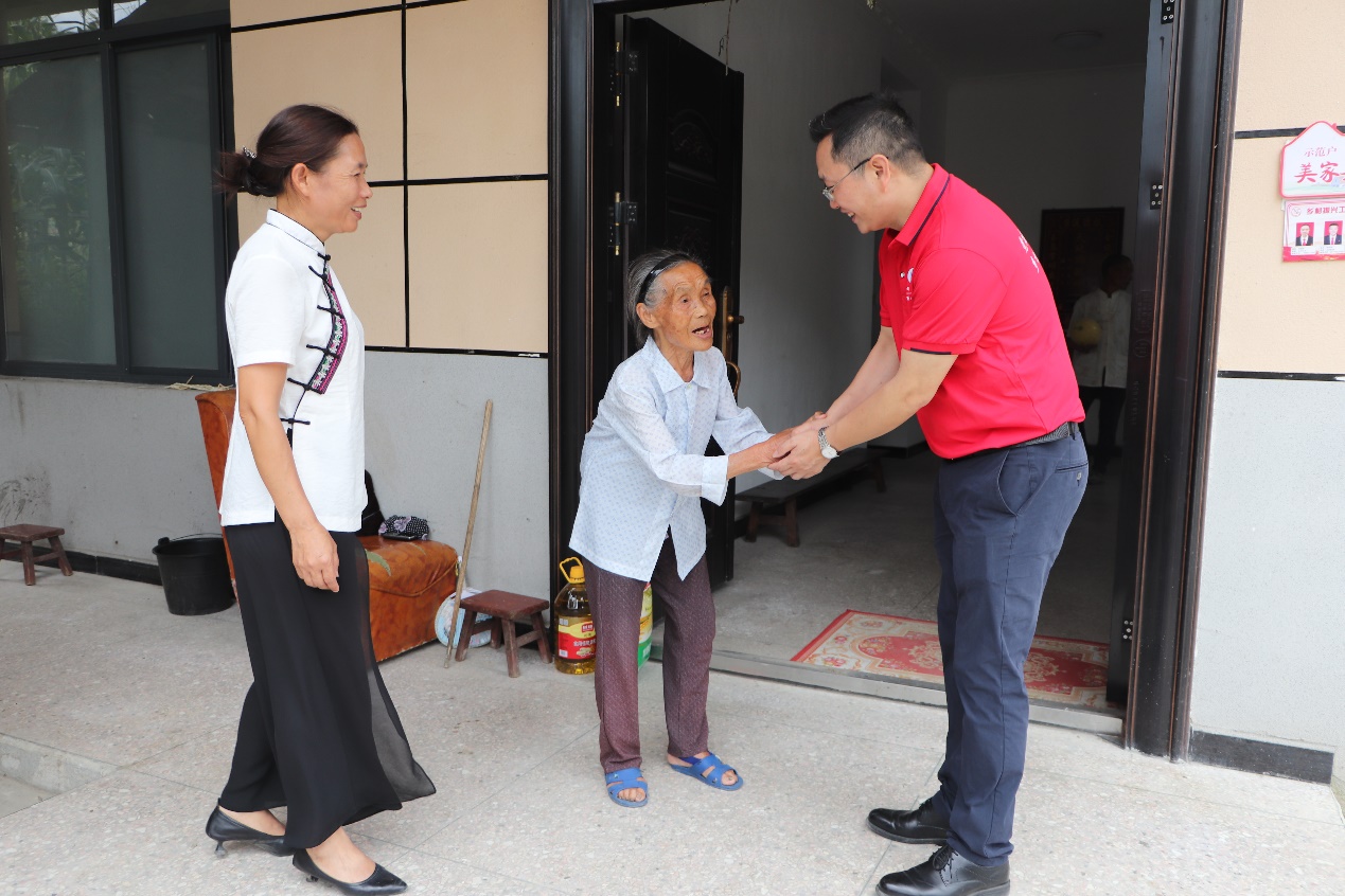 会后,众人携粮油到木脚村当地光荣在党50年的老党员家中进行走访慰问,表示敬意与感恩。质朴村民们用西瓜回应实践团人热情,双方促膝相谈甚欢。通过与老党员们的交谈,实践代表团队们重温历史,领悟党性。一名党员就是一面旗帜,本次走访激发了实践团成员担当时代重任的使命感、筑牢树立远大理想的坚定感,激励实践团队成员们努力成长堪当民族复兴重任的时代新人。