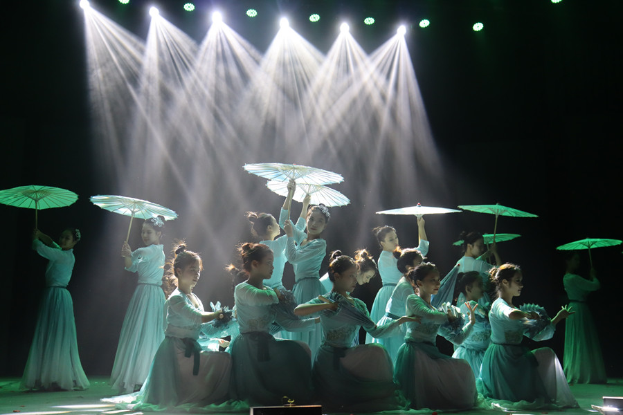 图学院舞者表演舞蹈《雨涧春行图》