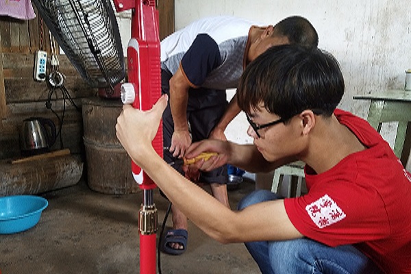 村民们在得知开元三下乡志愿服务团将开展义务维修活动后,纷纷把需要维修的电器交到志愿者手里,志愿者们接过电器,马上动手维修起来。不能正常工作的小风扇、电饭锅、小台灯、电热水器,经过开元志愿者的认真检查与维修,小家电的问题很快得以解决。