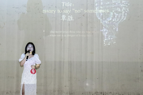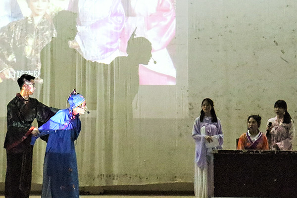 在前五位选手比赛完毕后,随即学习部带来舞台剧《唐伯虎点秋香》,全程虽是英文对话但其充沛的情感引人入胜,也将现场气氛推向高潮。舞台剧完毕后又迎来激烈的比赛,此次出场的是19级英语翻译一班的覃胜,她以地道的口语表达、接地气的表演以及惟妙惟肖的配音,现场观众为她时而倾身、时而欢呼。最后,来自20级法学一班的曾紫嫣,用其标准的美式发音将现场观众带入其口语表达情境中,随即整场比赛环节也进入结束。