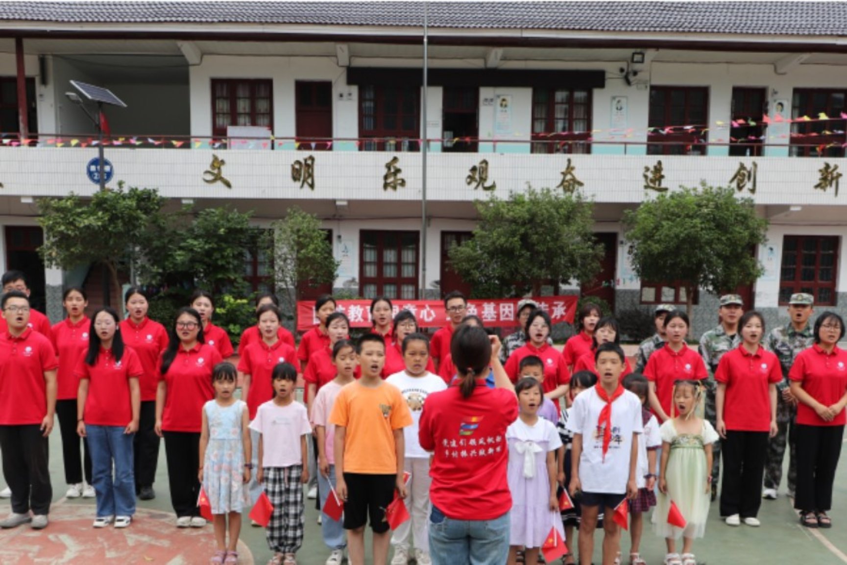 图 实践团成员与“筑梦课堂”学生合唱《我和我的祖国》