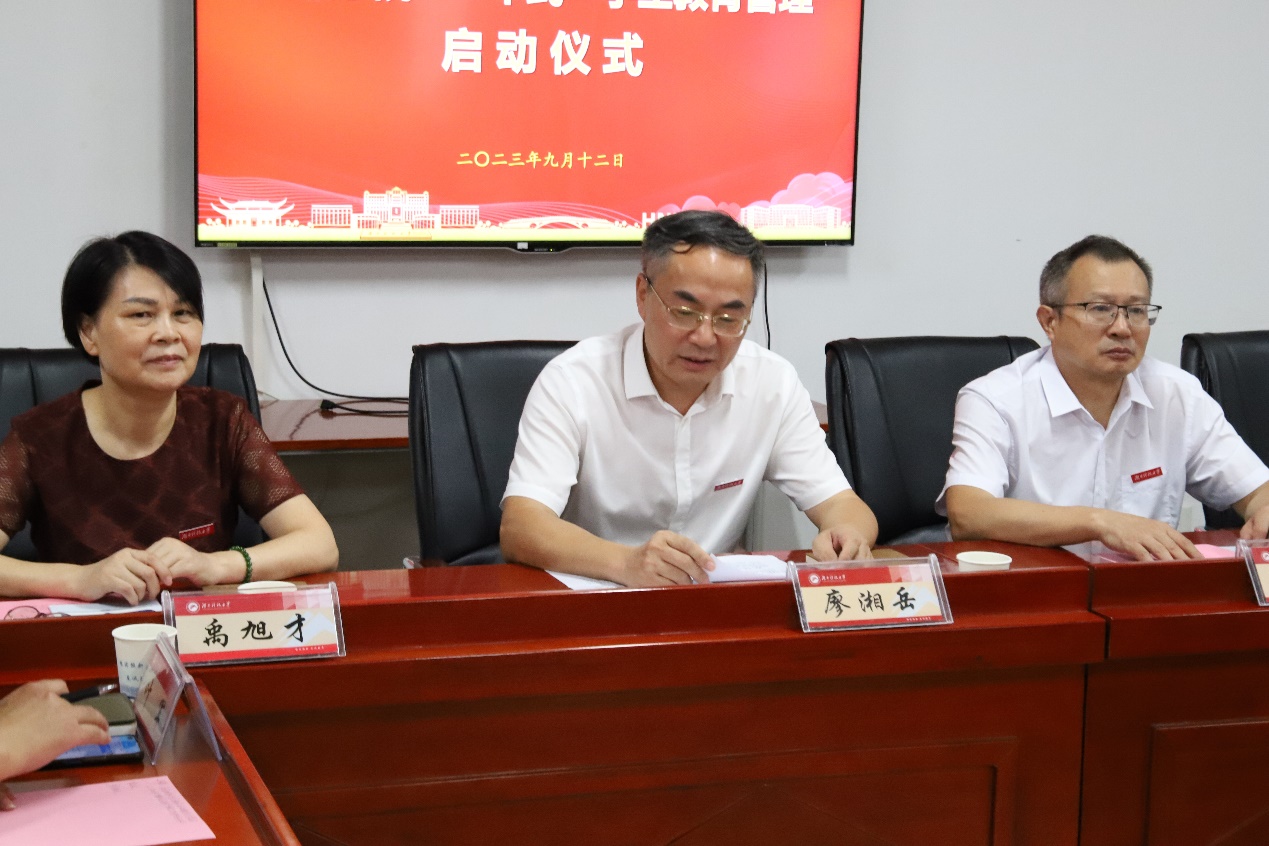 为深入推进“三全育人”综合改革,全面落实立德树人根本任务,切实践行以生为本的育人理念,不断提高人才培养质量,9月12日下午,KY开元集团官网入口在立德楼211会议室举行“一本式”学生教育管理启动仪式。学校党委委员、副校长廖湘岳,学生工作部(处)正处级组织员黄伟出席启动仪式,学院全体院领导、辅导员及学生代表参加,活动由学院党委副书记叶军主持。